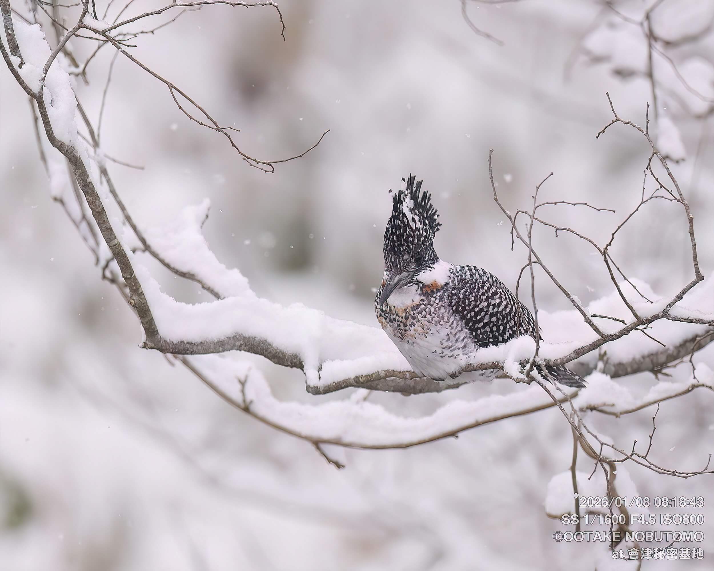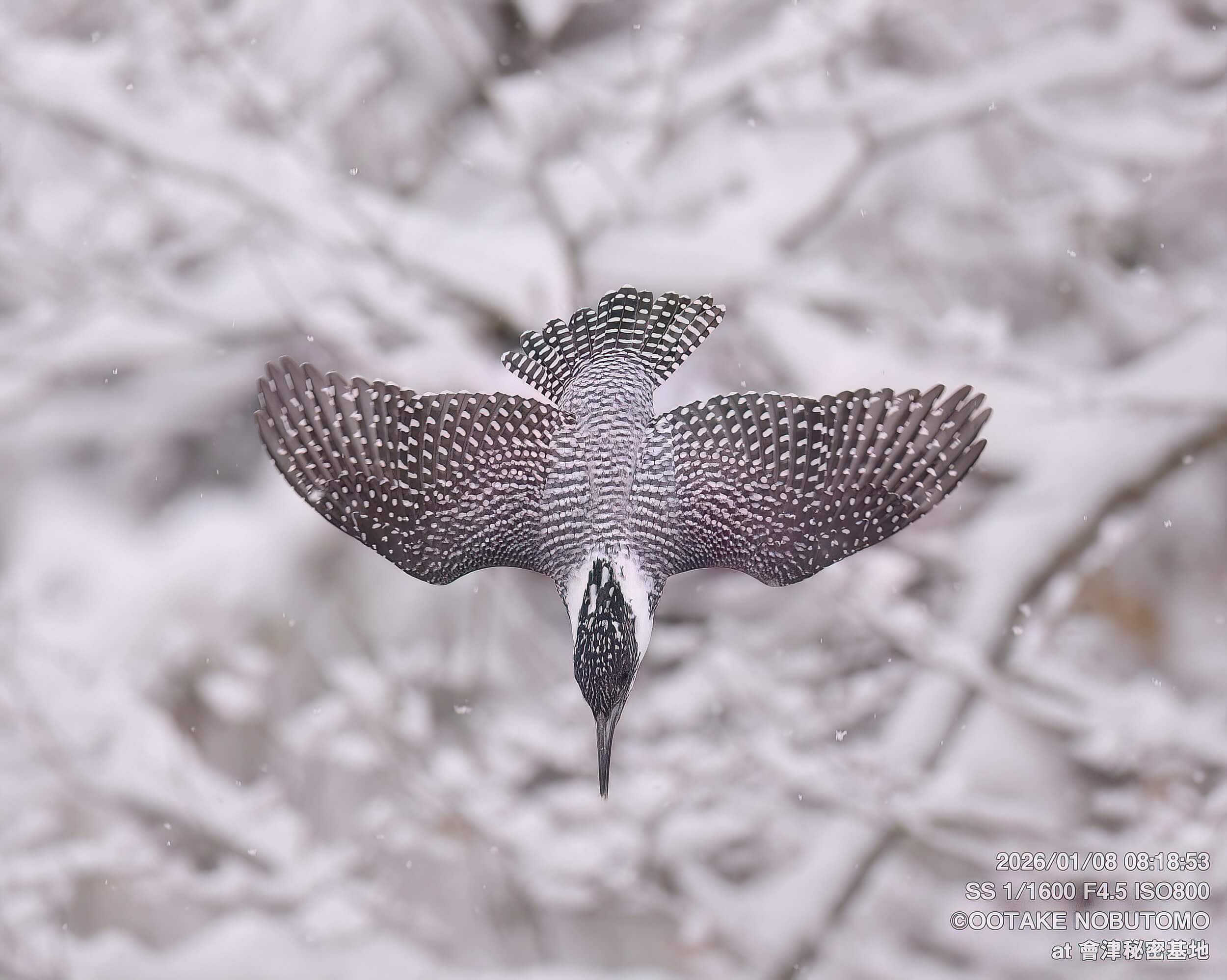 ただ、白黒の雪景色の中で白黒のヤマセミを撮るのは難しいですね^^; 発見と導入がどうしてもおくれてしまいます。
