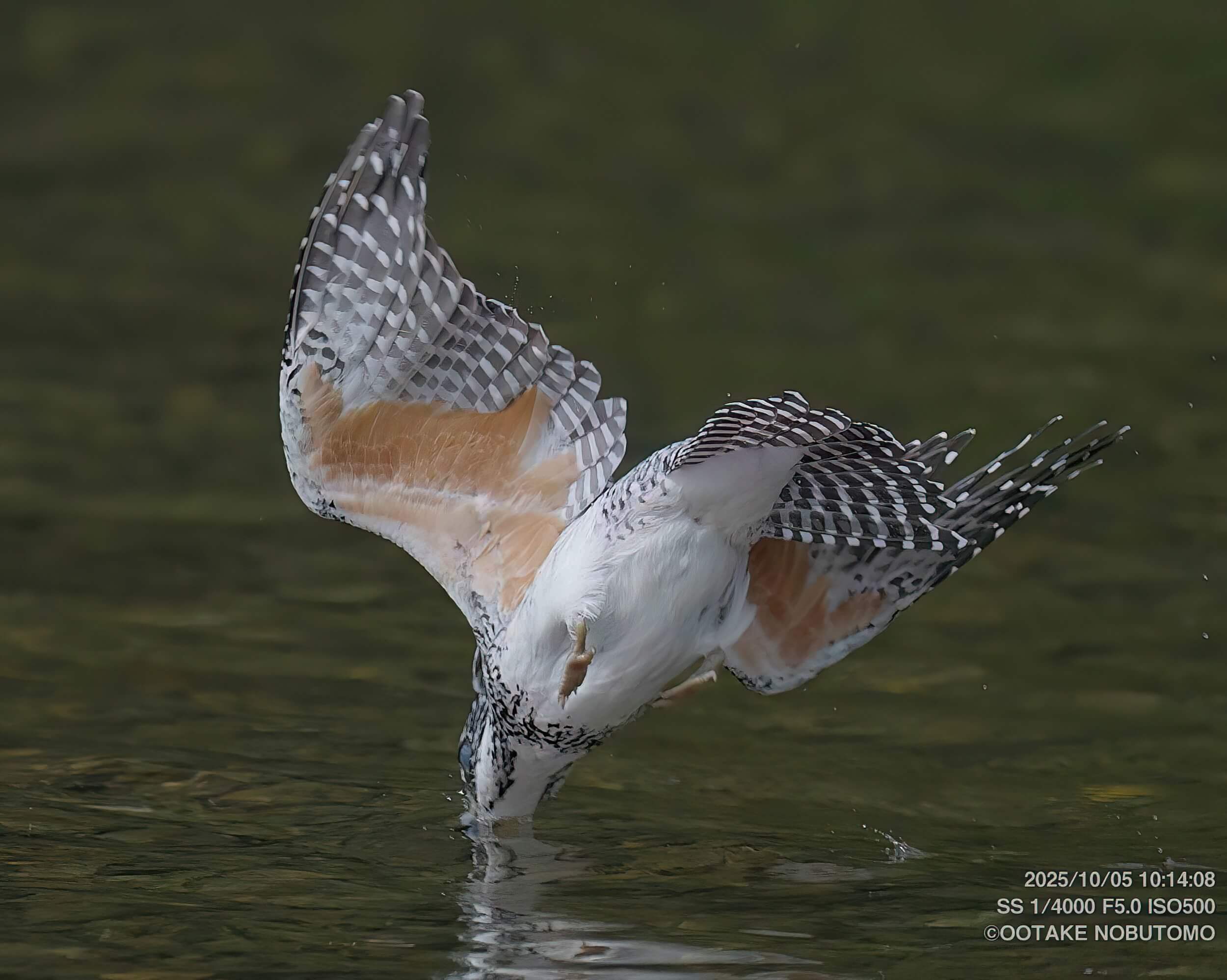 この日はメスの成鳥がメインに相手をしてくれました。 朝イチにオスの幼鳥が飛来(暗かったので写真なし)、その後すぐにメスの成鳥とオスの若が一緒に来てくれました。 そして明るく成り切った頃、再度メスの成鳥が飛来! でっかい鮒を必死になって飲み込んだ後に基地前に再度来てくれて最高の締めくくりで帰りました。
