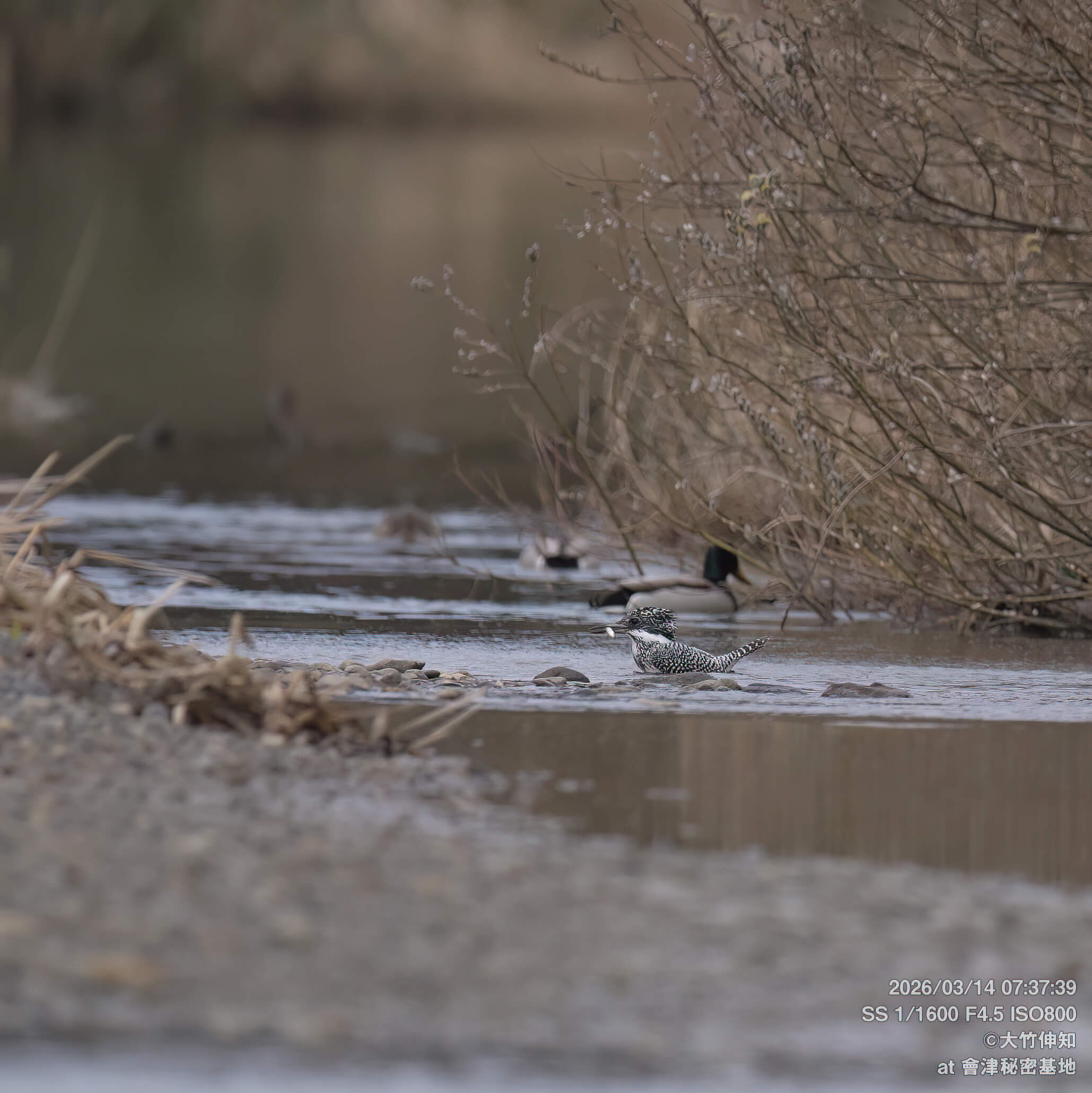 ■昨日のヤマセミ基地 早朝より飛来 狩り2回 ホバ1回