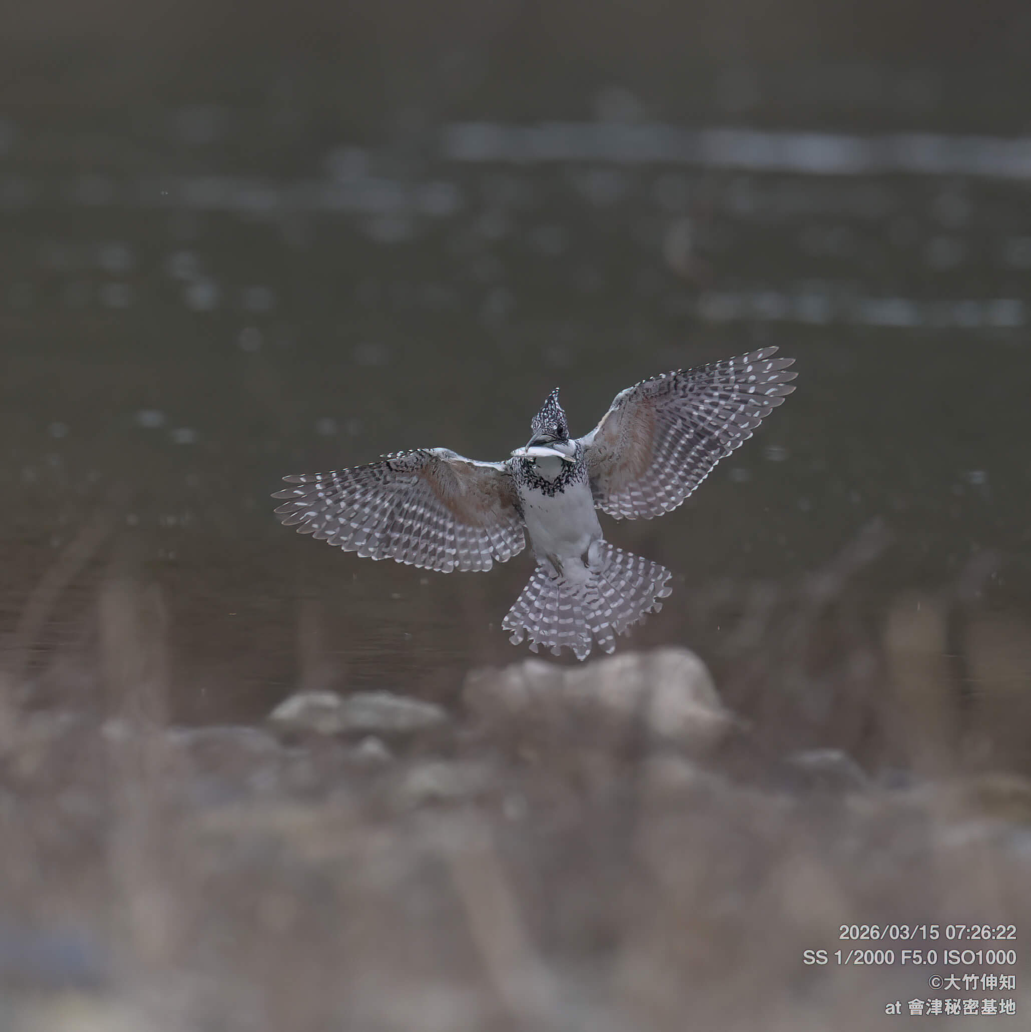 朝イチの飛来の時間になっても音沙汰無し… あかん汗 と思ったら鳴き声が! ようやく来たと思ったら飛び方がちょっと違う…. ホバって飛び込んでくれて魚も獲ったけど狩場も違うし… よーーく見てみたら昨年の若いメスでした!  お久しぶりー!!!! 元気そうでよかったよ!!! そこからすぐにほかの個体が通過していって追いかけて行ってしまいました(;^ω^)  でも無事を確認出来て良かったです^^